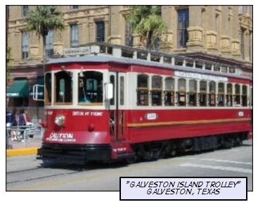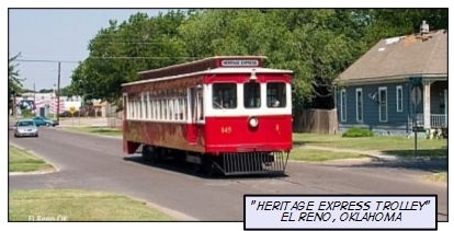 El Reno is about 30 miles west of Oklahoma City. It has a population of 15,000. That's about one-fifth of Napa's population. El Reno has run the Heritage Express Trolley since 2001. The trolley travels 0.9 miles connecting the local historical museum with the downtown shopping area. Total trip time is about a half hour. Tickets are good for four rides and cost $3.00. Galveston, Texas