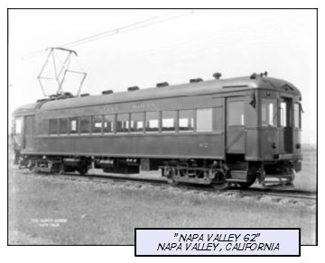 Does this sound like a radical idea? It wasn't radical in the early part of the last century. Interurban passenger railcars ran regularly until 1937 all the way from Calistoga down to Vallejo. Car No. 62 (and its sister car No. 63, now at the Western Railway Museum in Suisun City) had enclosed platforms on both ends, a smoking compartment, a toilet compartment, a main passenger compartment, and a baggage room. Lots of room for today's tourists to bring back cases of wine from their upvalley sojourns. An electric heritage trolley in the city of Napa isn't an idea whose time has come. The idea came some time ago. Let's just do it right. Let's save energy, lessen downtown traffic, decrease air pollution, decrease the need for parking, and in this time of ever-increasing competition for tourists, attract more visitors to our downtown area. And make it more fun for ourselves, as well. Benefits of a Heritage TrolleyFrom the American Public Transportation Association o Denotes permanence For more detail, see: www.heritagetrolley.org/Overview.htm www.heritagetrolley.org/planBenefits.htm Streetcar MythsMyth: Overhead wires will be an eyesore. Myth: Bikes and streetcars don't mix. Myth: Streetcars will harm bus service. Myth: People who don't ride buses won't ride streetcars. Myth: Streetcars are more expensive to operate than buses. Myth: Streetcars are too slow to attract riders. Myth: Streetcars won't reduce car trips. Myth: Fixed tracks make streetcars less flexible, and therefore a waste of money. Thanks to Downtown Trolley, Inc. of Madison, Wisconsin for the above myth information. ResourcesHeritage Streetcar Real Streetcars Outdraw Fakes History Repeats Itself Bring Back the Streetcars North American Vintage Trolley Systems The New Electric Railway Journal Light Rail Transit Association Light Rail Now